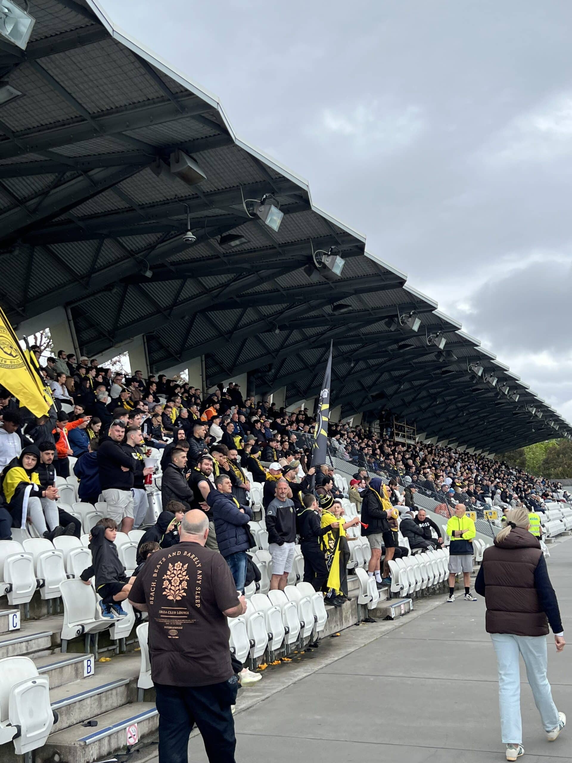The game was terrific, the day had me a wee bit teary-eyed.  I shut my eyes now and then to feel the crowd. What with the drums, the trumpets, the flags, the club colours everywhere, the day-long chanting and singing. The oohs and aahs as fans emotionally surfed the tide of a ripping game. With both sides of Lakeside Stadium comfortably full-ish for Saturday’s Greek derby, with eyes closed I was transported straight back to Middle Park of the 1970’s.